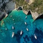 Cruise along the spectacular coastline of Corfu to the neighbouring Ionian island of Paxos & Antipaxos. Meander around the unspoilt Greek island of Paxos with its quaint town, hidden streets & pastel coloured houses, centred around the picturesque harbour. Antipaxos is rated one of the 20 most beautiful islands in the world, and known as the Caribbean of the Ionian islands. Direct access from the boat to the Vrika beach in Antipaxos – white sand, crystal clear waters and amazing scenery for the whole family to enjoy. Sail into the blue caves & discover the amazing change of coloured waters from blue to turquoise & emerald green.